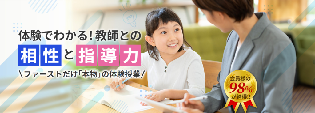 多くのセンターでは営業マンが体験を行いますが、ファーストは「実際に教える先生」が来ます。これにより、入会後に「思っていた先生と違う」というトラブルがほとんど起きません。