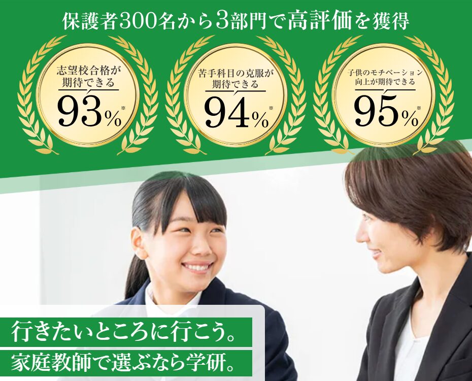学研の家庭教師は、実績と信頼性を兼ね備えた大手派遣会社です。授業の質はもちろん、保護者へのフォロー体制や受験情報の提供など、トータルでの満足度が非常に高いのが特徴です。