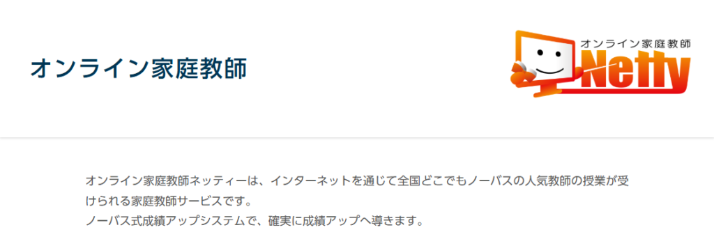オンライン家庭教師ネッティーは、「家庭教師のノーバス」の実績を基盤にした、非常に堅実でサポートの手厚いサービスです。