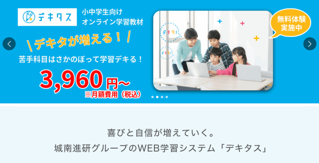 • 入会金がなく、月額も中学生向けプランで比較的リーズナブルなので、まずは負担を少なく始めたい家庭にぴったり。