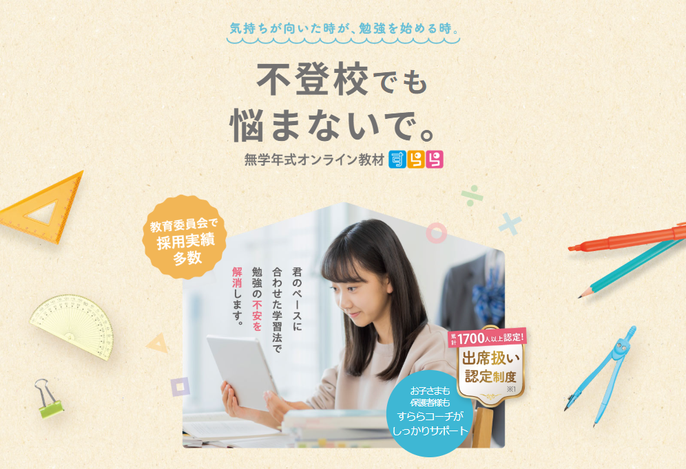 オンライン学習教材「すらら」は、不登校支援や発達特性のある子の学習に強い教材として知られています。アニメーション授業やAIによるつまずき分析など、子どもが自分のペースで学習を進められる仕組みが特徴で、特に「勉強につまずきがある」「集団授業が合わない」「学習の習慣がつかない」と悩む家庭に支持されています。